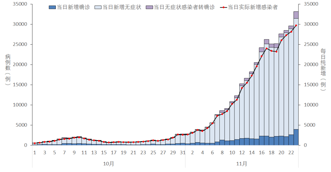 3. 北京面臨本地疫情和外省輸入雙重壓力,應(yīng)對(duì)策略將成為全國(guó)風(fēng)向標(biāo)。北京本地疫情傳播鏈尚未完全阻斷,周邊的河北、河南省疫情均較為嚴(yán)重且外溢報(bào)道頻繁,疫情防控態(tài)勢(shì)極為嚴(yán)峻。北京防控措施嚴(yán)格,核酸檢測(cè)頻繁,疫情一般能早期發(fā)現(xiàn)和控制,但高校等人員聚集場(chǎng)所眾多,加之氣溫已明顯下降,出現(xiàn)暴發(fā)事件的風(fēng)險(xiǎn)也隨之上升。北京政治地位高度敏感,疫情應(yīng)對(duì)策略將是全國(guó)防控的風(fēng)向標(biāo)。