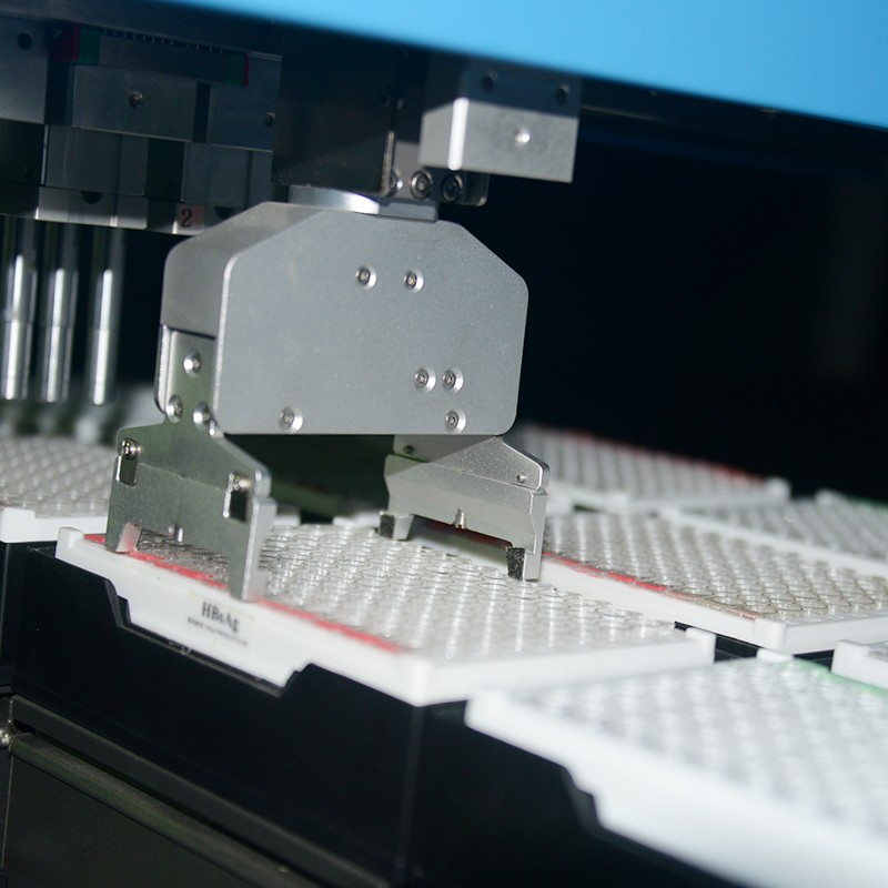 十一、機械臂:一個智能機械臂,用于標本和試劑分配、抓板;配備全智能壓力感應式機械抓手,壓力感應系統實時監測抓板狀態,防止掉板。