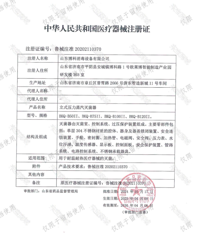所屬類目:II類:11-01濕熱消毒滅菌設(shè)備批準(zhǔn)文號(hào):魯械注準(zhǔn)20202110370